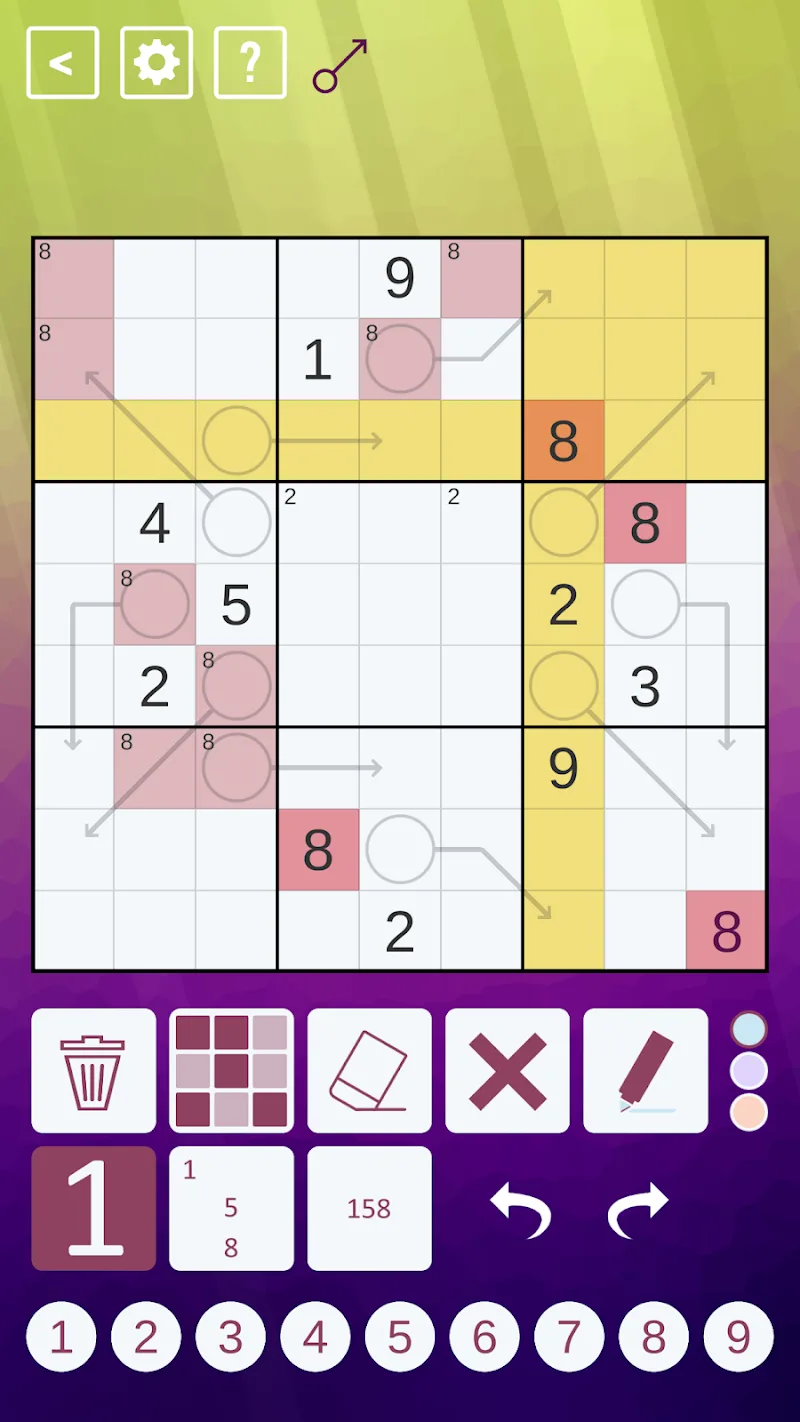 - Innovative Arrow Rule: The arrow rule is set and applied to many games. Players can easily handle Sudoku puzzles when mastering this rule. The numbers along the body of the arrow must have a sum equal to the number at the root.