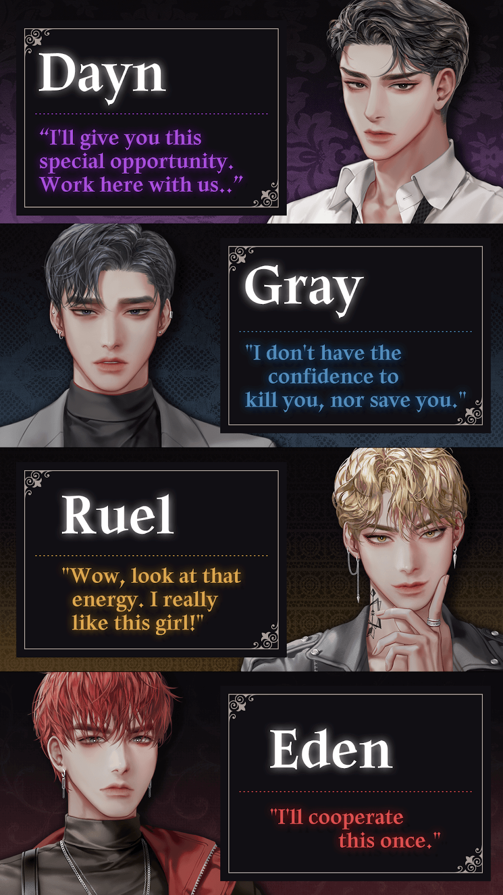 - Immersive Otome World: You will be immersed in an interesting otome world, where you can play the role of different characters and customize the appearance and personality of that character.