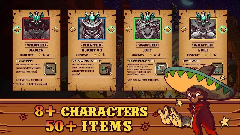 Characteristic roguelite matches will be held in this game. Players will play the role of a cowboy hero in the West and face a series of special challenges. They will have to learn how to use professional skills as a hero to protect their lives.