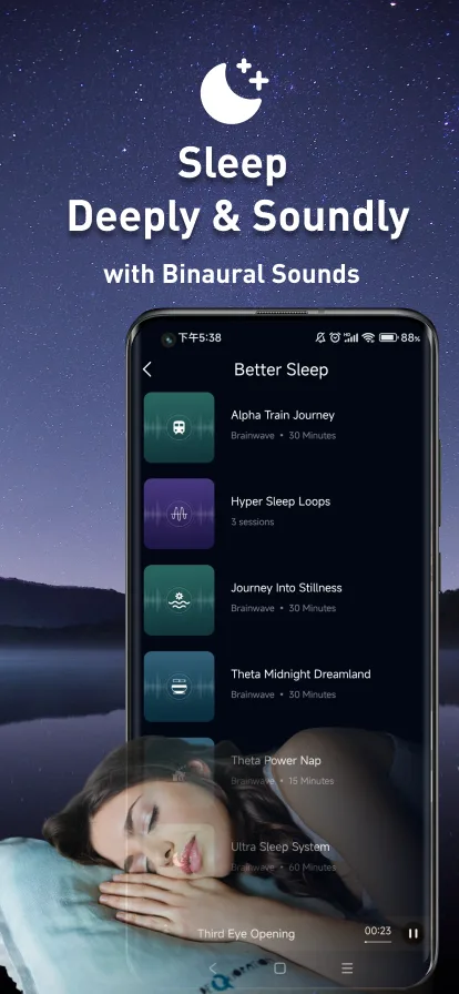 The application will have an extremely powerful impact on your brain, helping you to quickly fall asleep, reducing sound waves or effects that make it difficult for you to sleep, and giving you a deep sleep.
