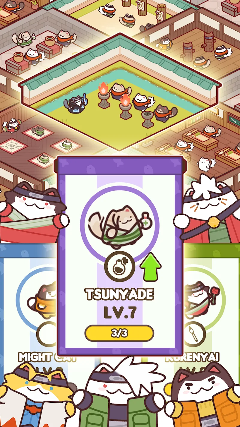 A ninja school is probably a school where the atmosphere is filled with mysterious killing techniques. Cat Ninja School: Idle Tycoon makes it an extremely cute place. By turning everything into cats. Cats are cute animals, easy to bring sympathy to players. This game will turn players into the principal of this school. Everything that happens in this ninja academy is managed by you. Players will have to manage unruly students who possess martial arts and many different types of mysterious powers. And you also have to try to hire the most professional teachers in the ninja world.