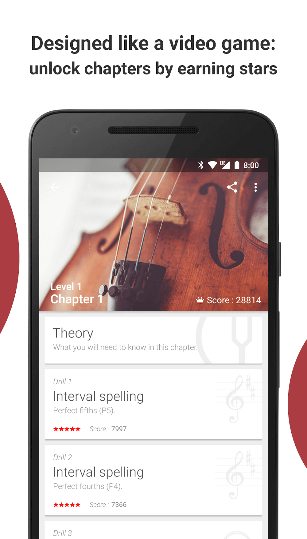 - Customizable drills: You can customize your exercises with the types of instruments and difficulty you want to practice, giving you initiative in learning and helping you to develop better every day.