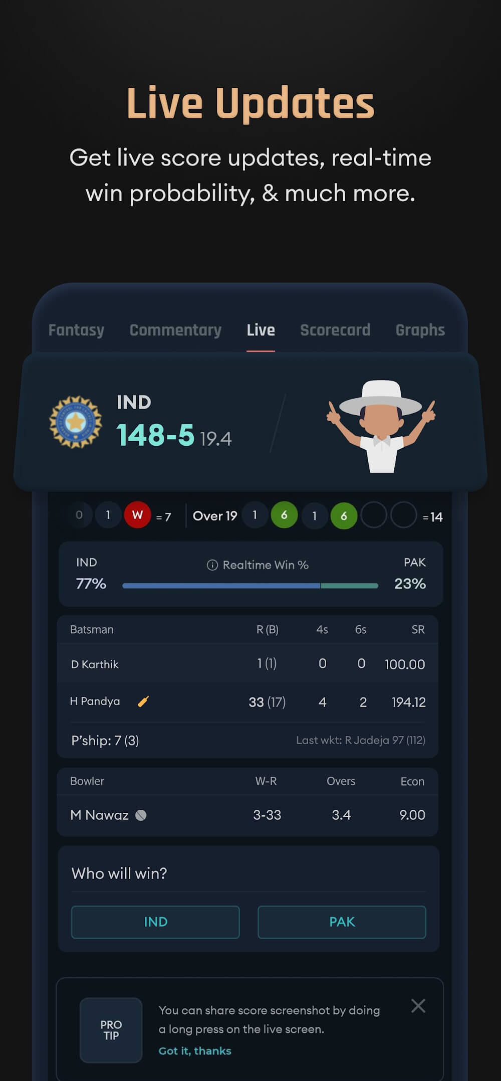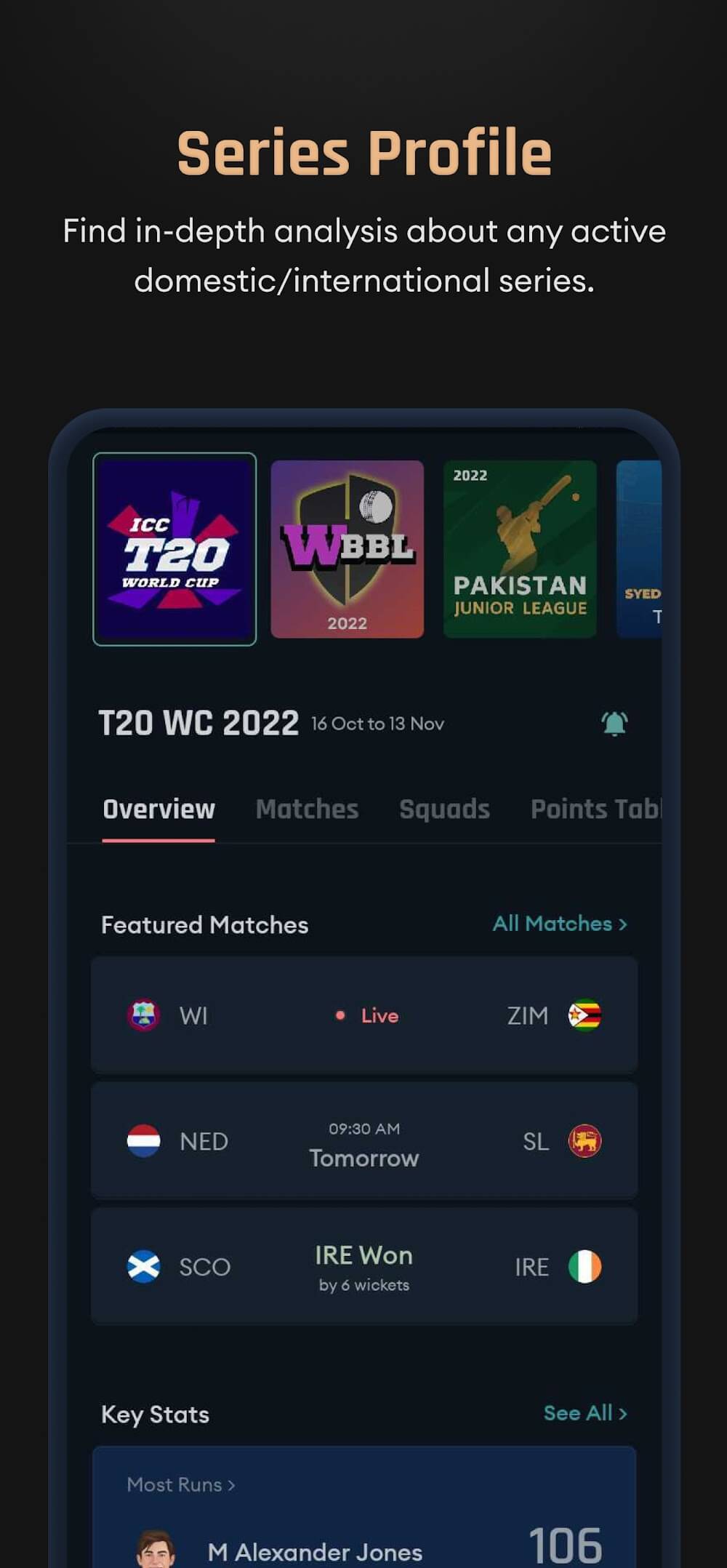 The app also brings you extremely detailed cricket tables. The scores, information, and matches will be brought to you in the most detailed way without you having to search for information in other news sources.
