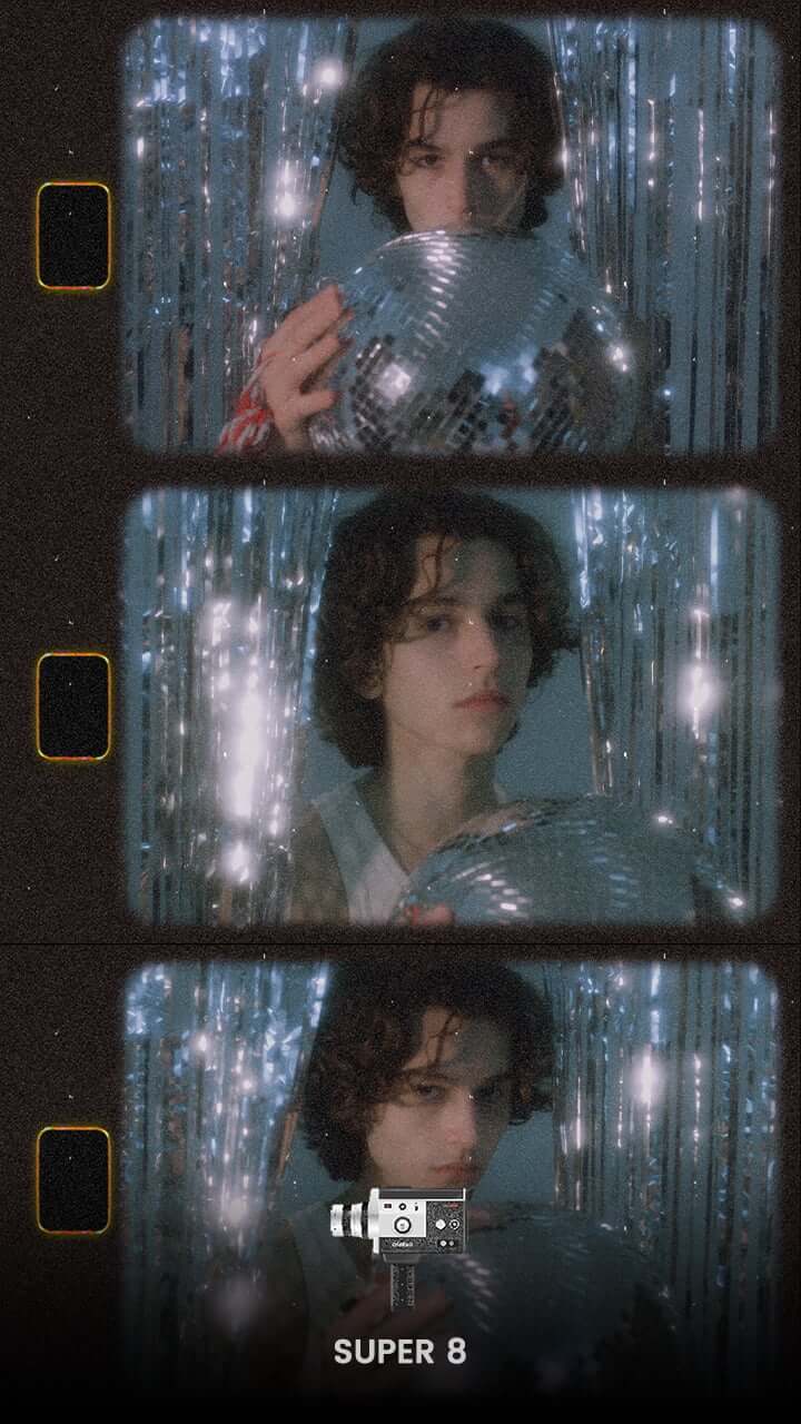- The photo is surrounded by a square film frame and classic scratch effect.