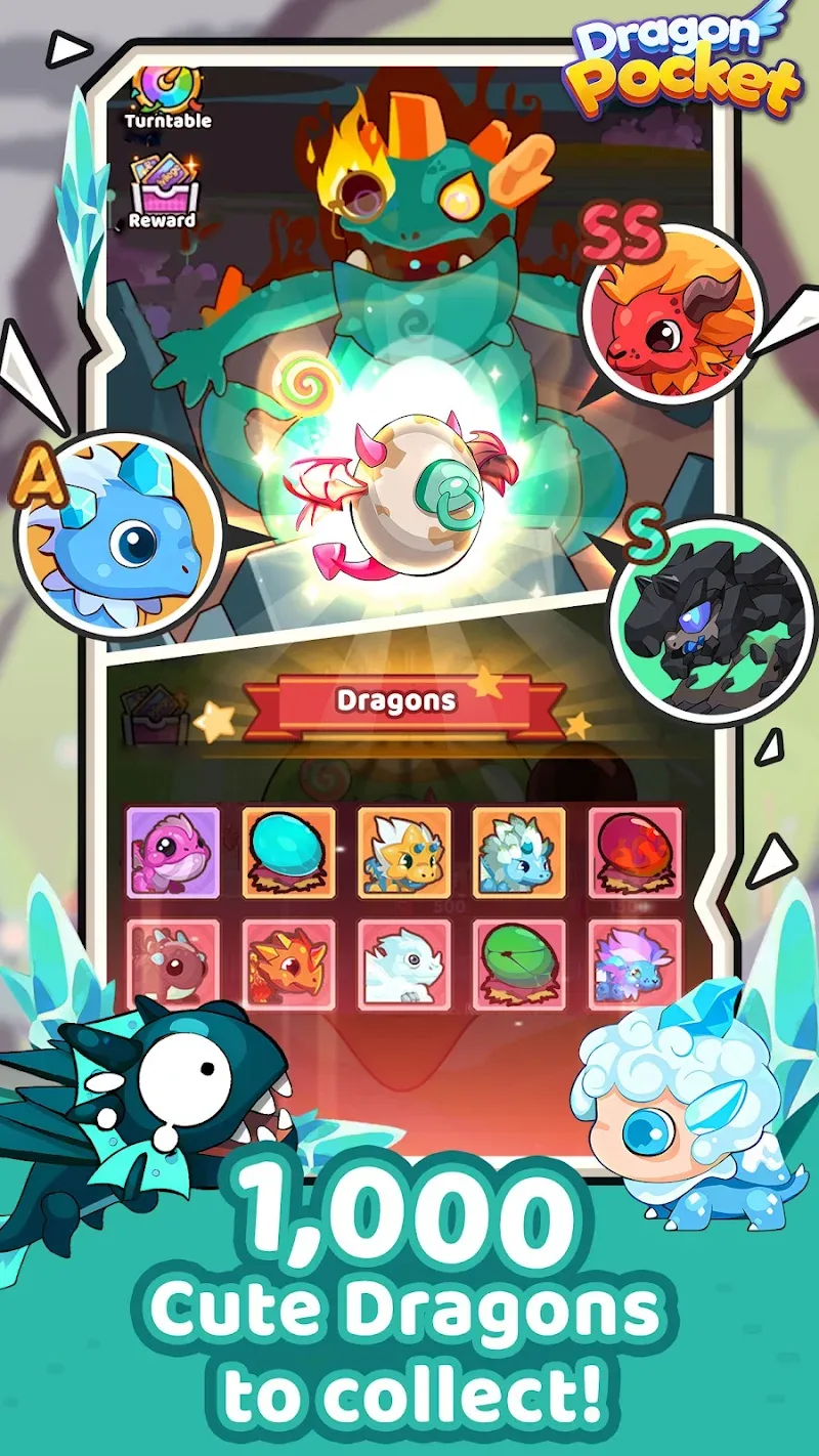 You can collect dragons of different shapes and colors. Each dragon belongs to a different type, giving you a huge variety and plenty of options to choose from.