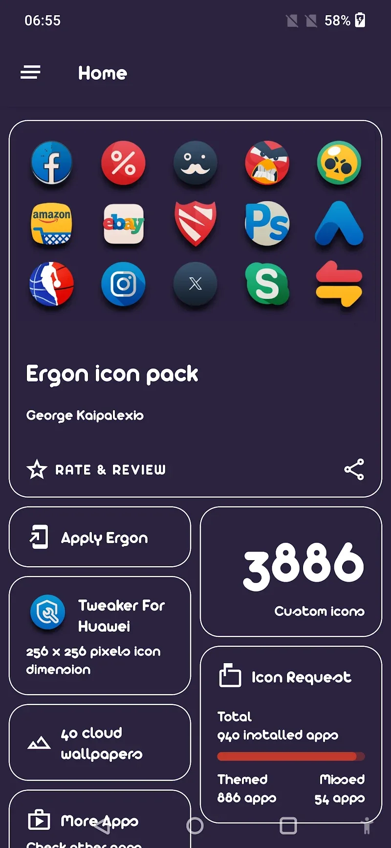 The default icons on the device will be replaced by a unique icon pack provided by Ergon – Icon Pack. Users can refresh the device interface with beautiful icon templates. In addition, the application shares more wallpapers that match the icons being used.