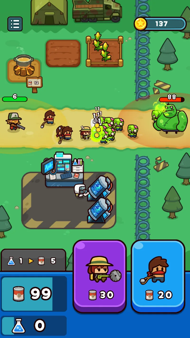 Players’ combat units are created in the laboratory. They will continue to upgrade the necessary equipment to improve the defense system. Not only stopping at defense, players can also counterattack with large-scale attacks. Additional squads will be mobilized by players to deal with all remaining zombies.