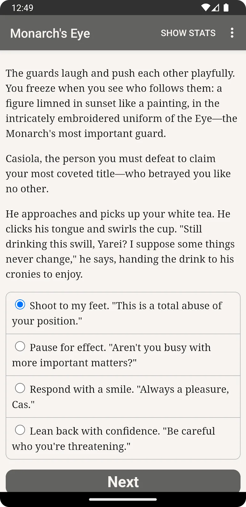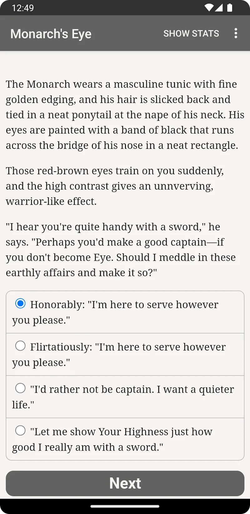 After a long time away, you return to your homeland and want to conquer the difficulties that you had previously given up. Games of the Monarch’s Eye brings you new details in a novel, from which you can discover your full potential and abilities. Facing a series of challenges will help you grow stronger and have the right ways to handle each situation.