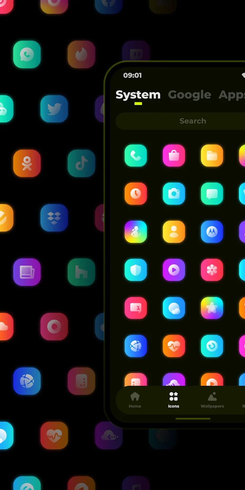 Bringing you new icons is the first impression you see. The application also provides you with a series of icons for many unpopular settings. The application offers different themes from which you can choose. Searching by voice or by keyword is convenient. The application has an additional feature editor for icons that you find unsuitable.