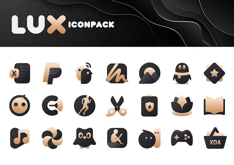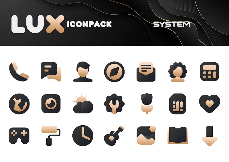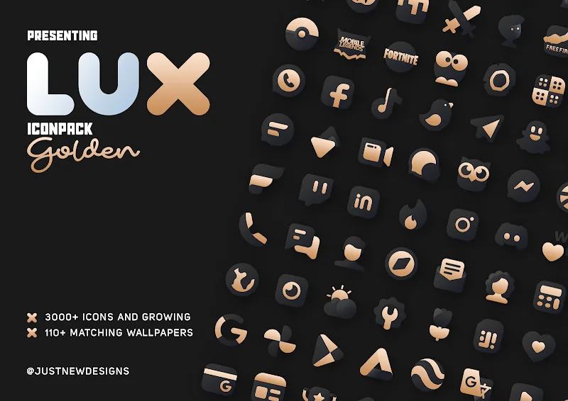 The perfect combination of two high-contrast colors, matte black and gold, will make the icon pack in Gold IconPack: LuXGold stand out. Users will feel the elegance and modernity of this special icon pack. Each icon and wallpaper in the pack has a mysterious beauty.