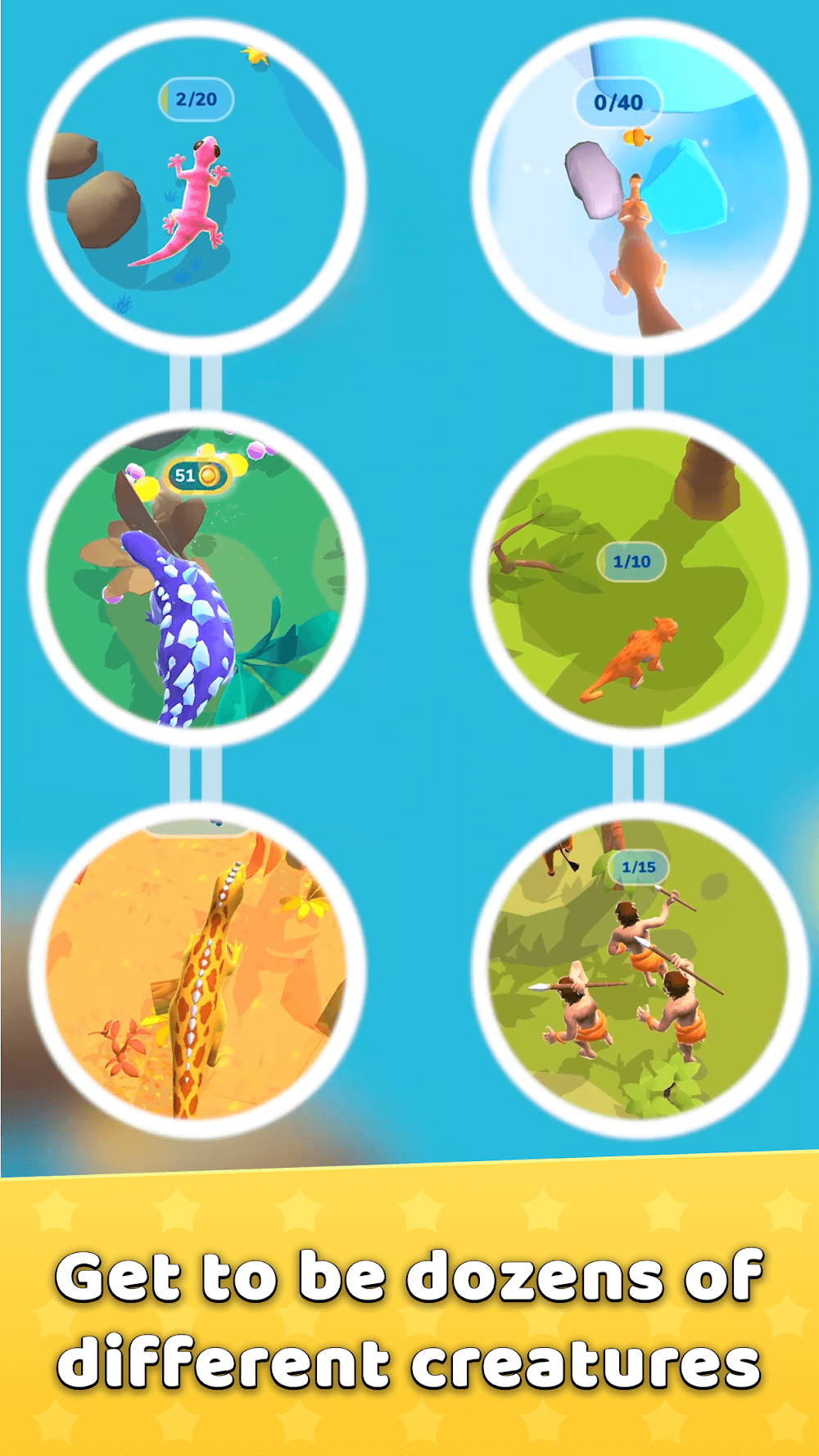 - Species evolution: The game will bring you extremely unique knowledge, you will learn while playing, bringing you levels with extremely interesting evolutionary missions and challenges, giving you countless unique and attractive experiences that you cannot find anywhere else but this game.