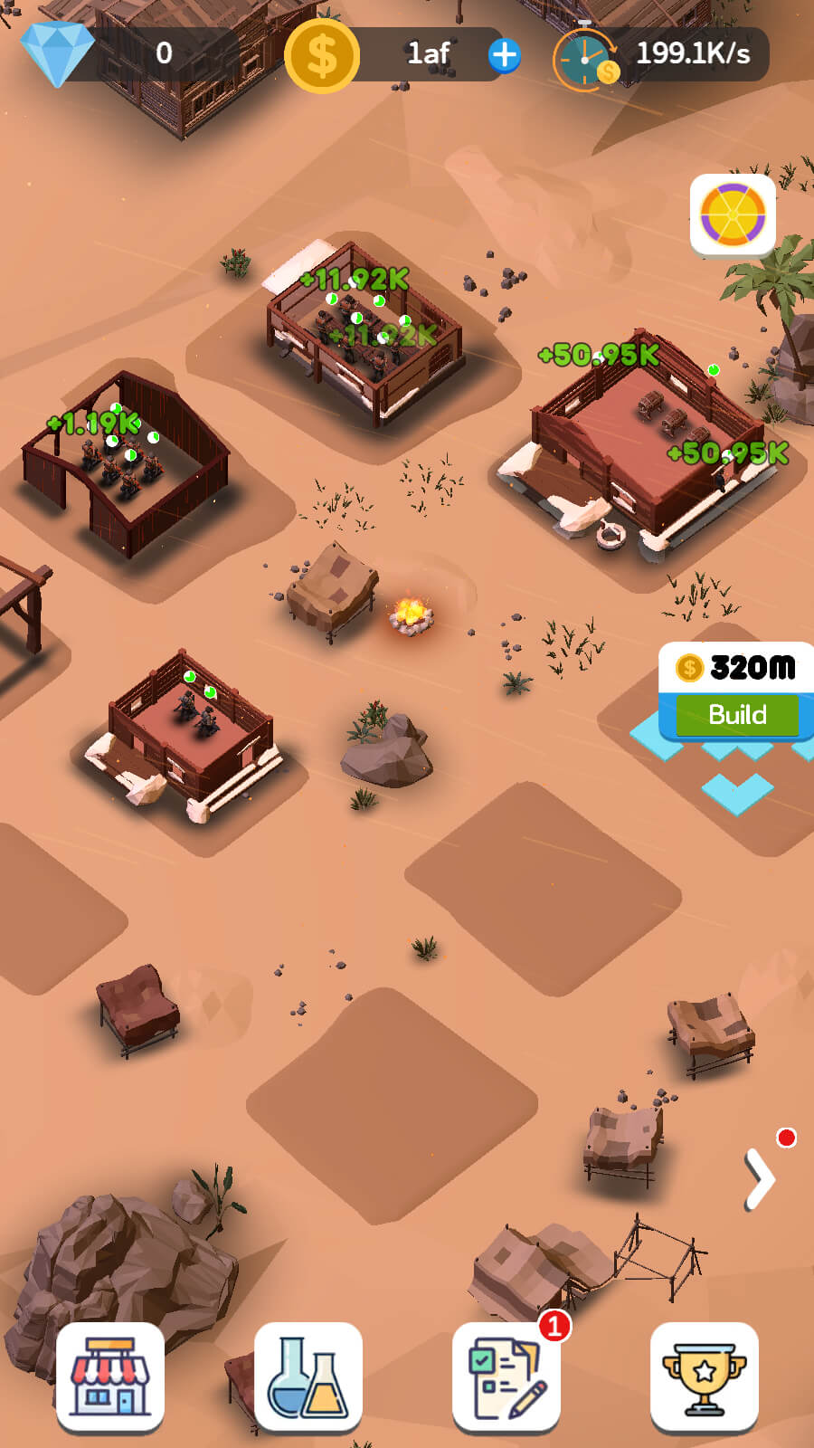 Idle Desert City revolves around the player’s journey of survival in a world that is gradually fading. Many people will become wanderers and go to the new area that you are building. Of course, many new activities will be performed to have enough resources to expand the base besides recruiting survivors.