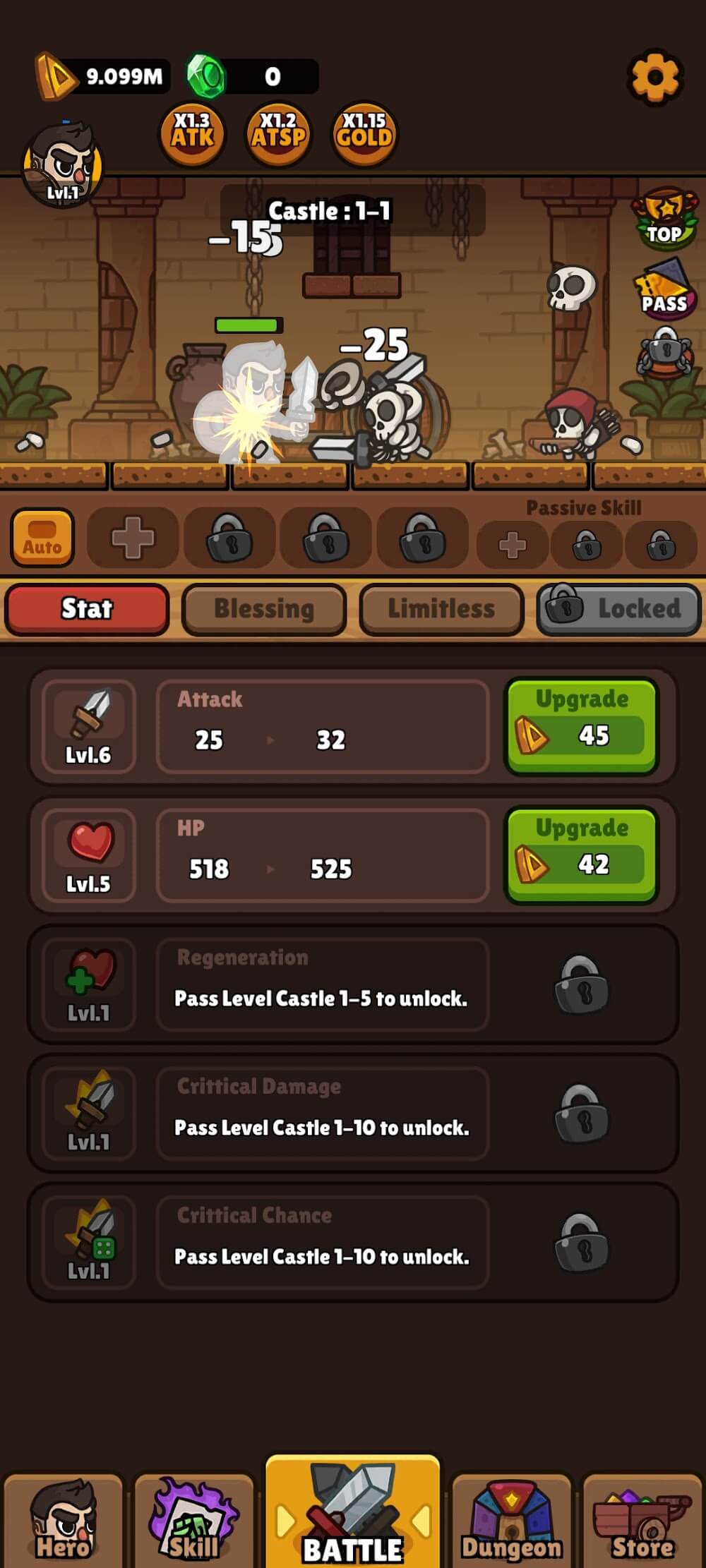 Idle RPG Adventure Hero will bring you a journey of extremely attractive and engaging warriors. In this game, you are the bravest warriors. You will enter the battles against the extremely powerful and evil skeleton monster armies to protect the world and the people living here. The game will bring you battles with extremely attractive and unique combat effects that will immerse you in it from the first time you try it.
