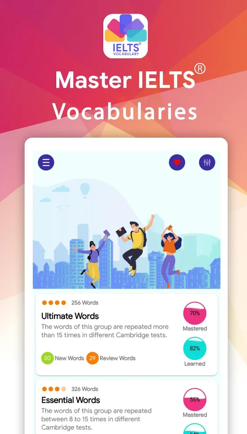 If you are looking for an application that can help you memorize vocabulary quickly and easily, IELTS® Vocabulary Flashcards is an excellent choice. The application will bring you extremely perfect and attractive flashcards; these cards will help you memorize faster and easier. What are you waiting for? Come here to study right away.