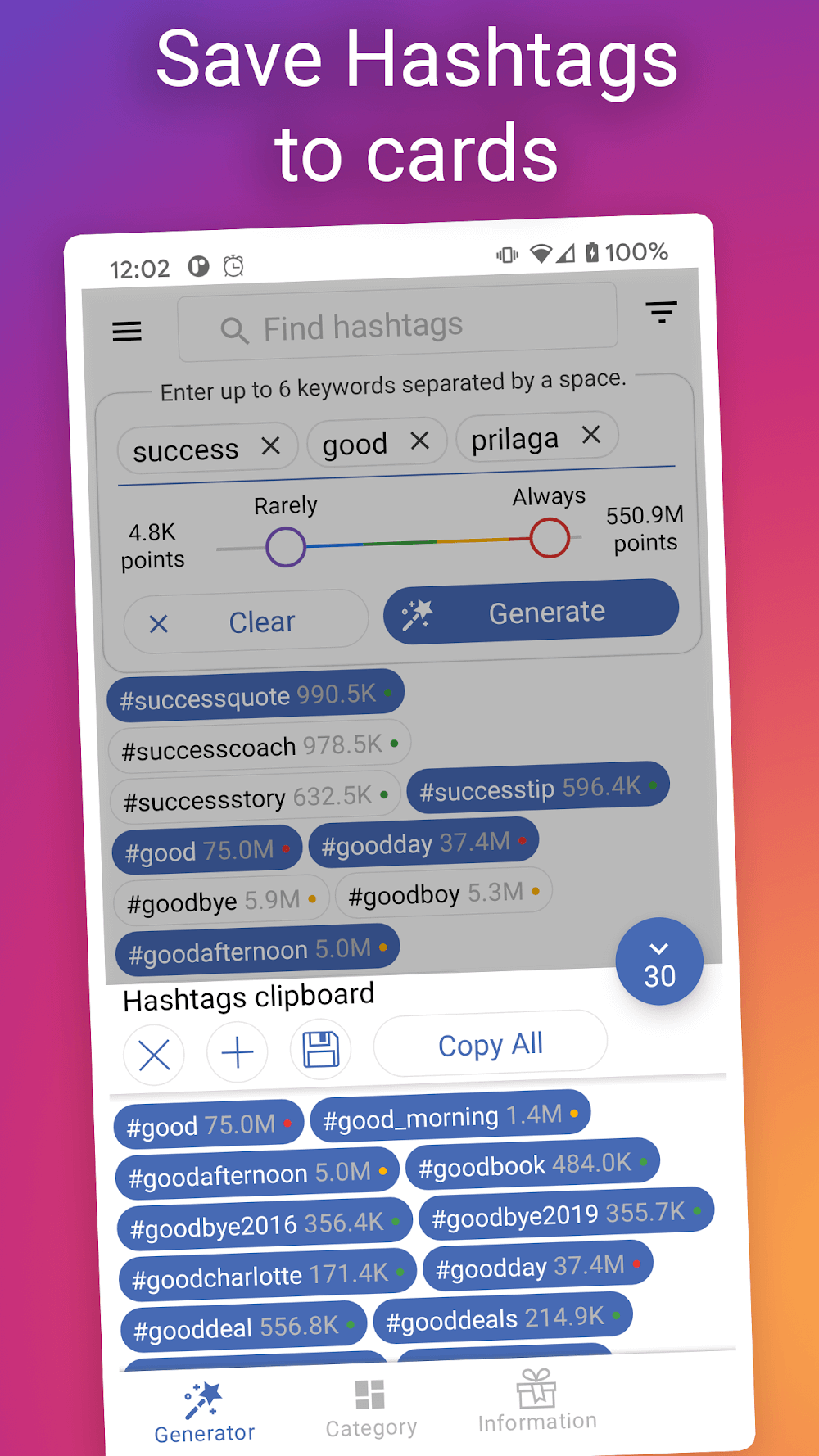 With this application, you can create viral hashtags quickly and easily without encountering any difficulties.