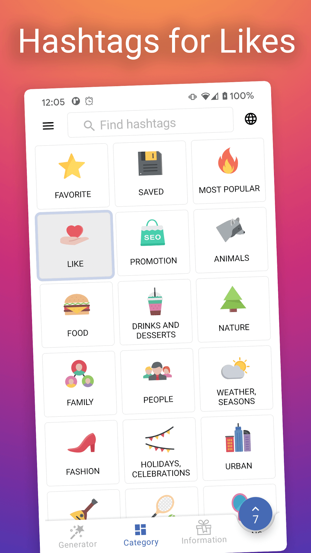 - Categories for Hashtags: You will own hashtag categories with a variety of different unique topics, giving you the most diverse options when using.