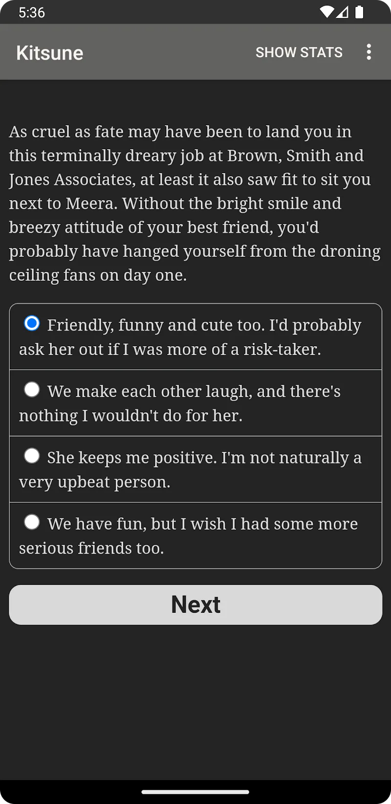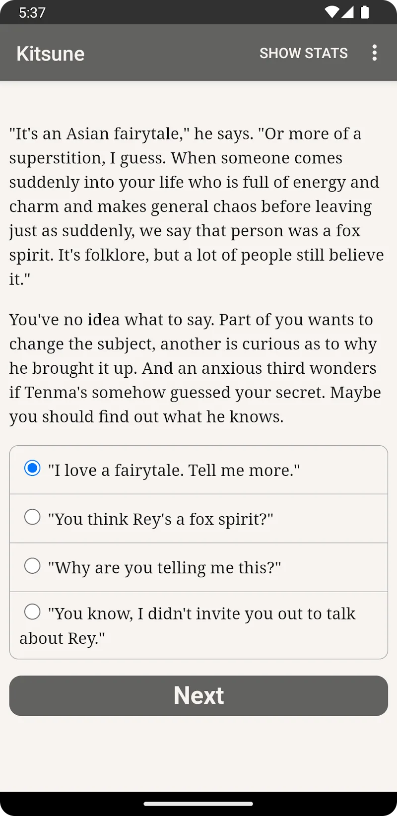 Have you ever searched for a game designed in the style of interactive role-playing with a storyline that you can easily experience on your device? Then Kitsune will be one of the great choices that you should not miss for your favorite game collection, with the attractive features it possesses. The game will bring its players a written story of about 300,000 words about love, lies, and foxes that they need to role-play and solve problems.