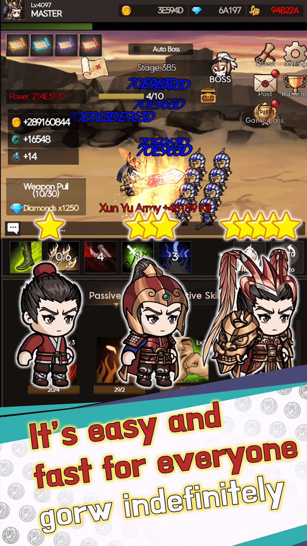 - Effortless Progression System: Everyone can nurture CAOCAO with minimal effort. This can be considered a key feature because the strength of the character helps you go to the next level.