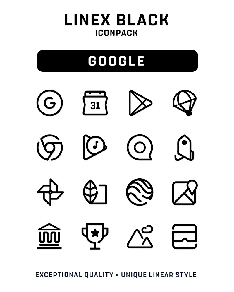 An icon set with an abstract design will give your smartphone a completely different look. It is like an art lover expressing his personality. In this way, he has been able to personalize everything about himself and upgrade his style to a new level. LineX Black Icon Pack is a derivative application of LineX. The original application itself has had a certain popularity in the community before. Now, this application brings a collection of unique icons designed with a dominant black color. It will definitely bring a new trend in changing icons on smartphones.