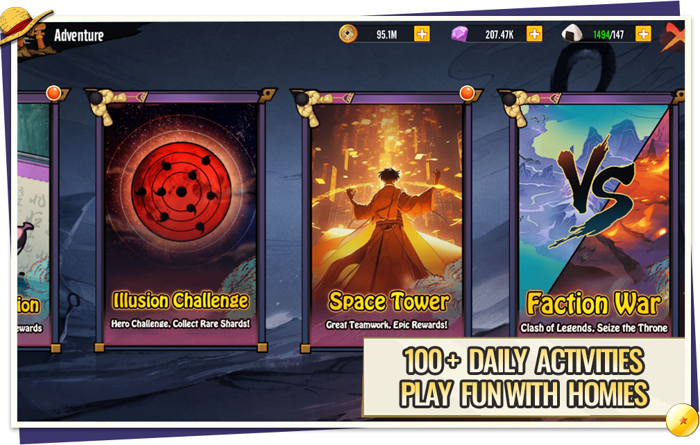 Coming to this game, you will come across extremely iconic manga warriors. Each warrior will possess different strengths and attractive fighting skills, bringing you extremely attractive and interesting levels.