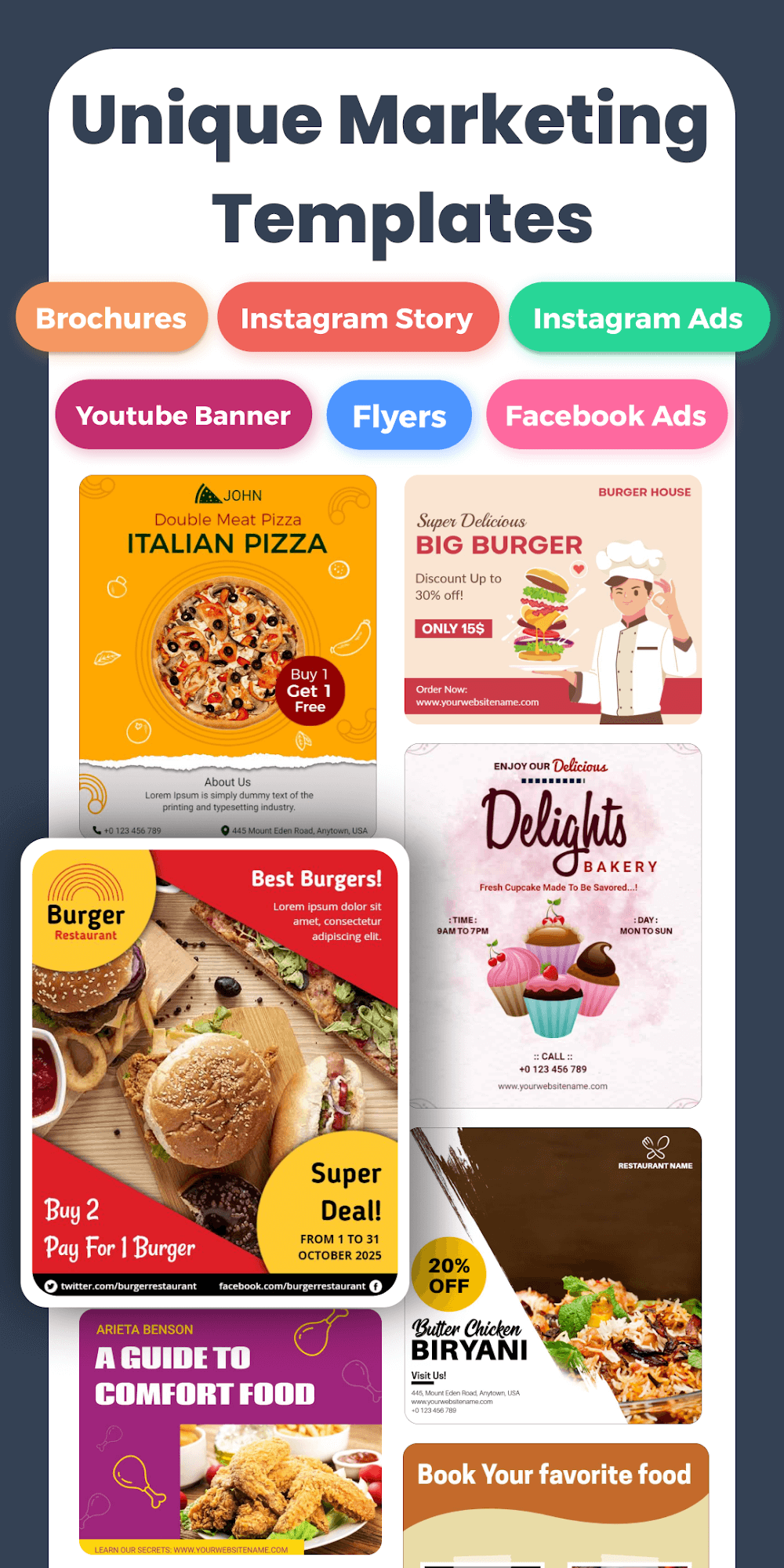 - Quick Design Tools: The application activates a flexible and diverse editing tool system. Users can quickly complete special designs for their restaurants. These tools help users customize the templates to make them more perfect and suitable.