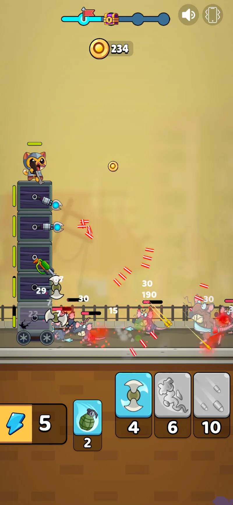 - Fast-Paced Fights: Players will be asked to take part in missions to bolster a warrior against unsafe adversaries. Particularly, they are sneaky rats that are attempting to crush your current moving tower.