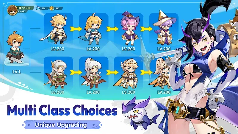 Capturing monsters and fighting is definitely one of the most familiar ways to operate games. Monmate Master: Idle Adventure brings players a fun journey in this style. The world in the game is a fantasy world where humans play a dominant role. However, they have to live in symbiosis with monsters, called Monmate. These monsters live in a friendly way with humans. Both species join forces to form forces strong enough to fight. The battles in the game gradually shape the world order. The winners will gain greater benefits. The unique point of the game is that Monmate possesses two main forms: a cute form like a pet and a powerful fighting form.