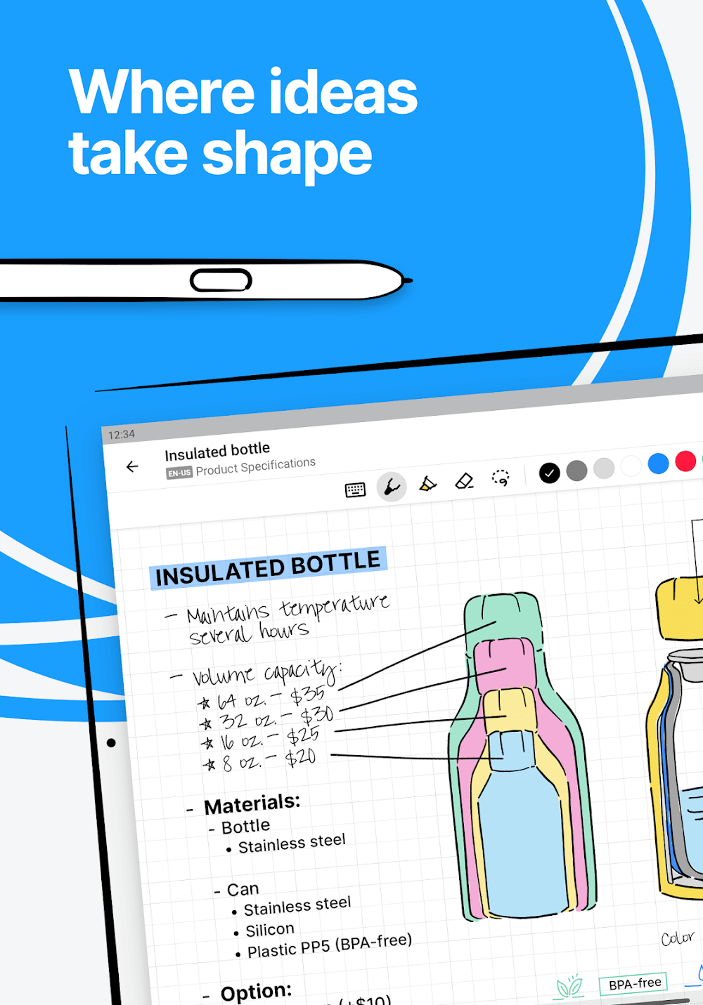 - Edit Intuitively: You will be able to use features and pen gestures to edit or reformat text and drawings exactly as you want.