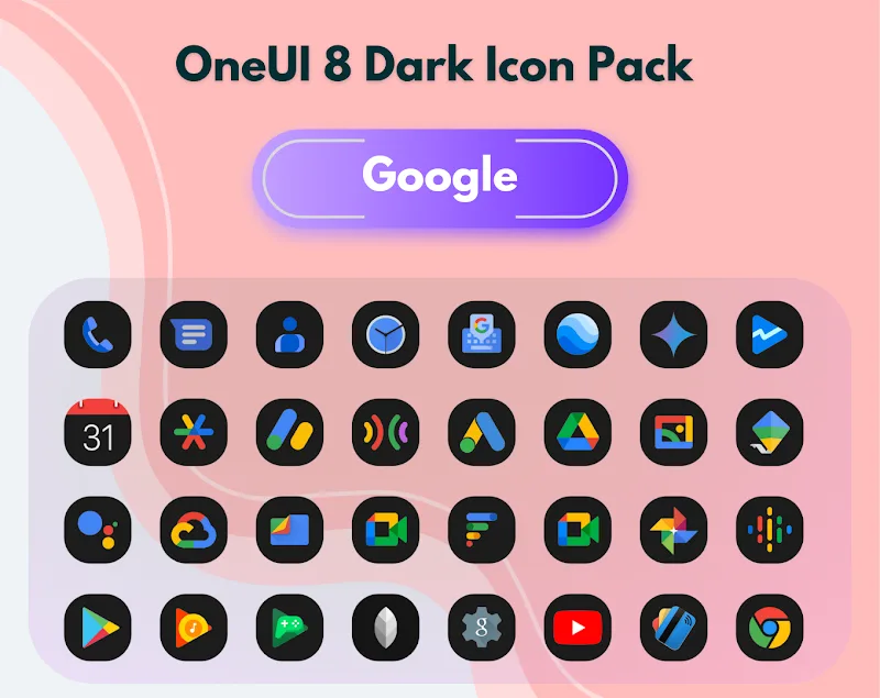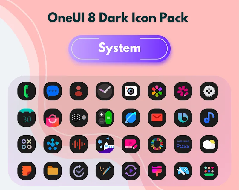 OneUI 8 Dark Icon Pack will bring you new and more attractive interfaces than the boring default interfaces. The application will bring you the most perfect and quality icons. Not only icons, but you can also own a set of attractive tool features and unique artistic images. What are you waiting for? Quickly come to this application and beautify your device right away.