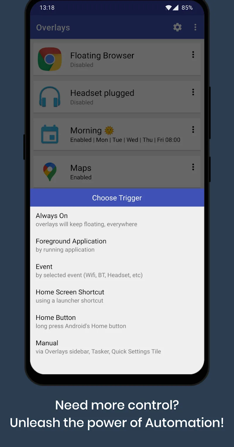In this era, multitasking is the most practiced skill. The world moves too fast, and people also need to have a way to receive information at the same time. Overlays – Floating Launcher brings the most powerful multitasking. Are you looking for an application that can let you listen to music and work on the same screen? Something that was impossible in the past on any mobile device? Now, with the power of this application, it will let the applications you want to work on at the same time appear right on the screen. It works in parallel, helping users quickly receive many things at the same time. The only limit is your cognitive ability.