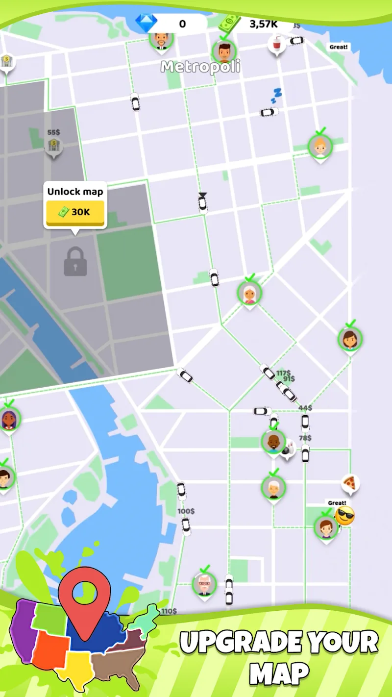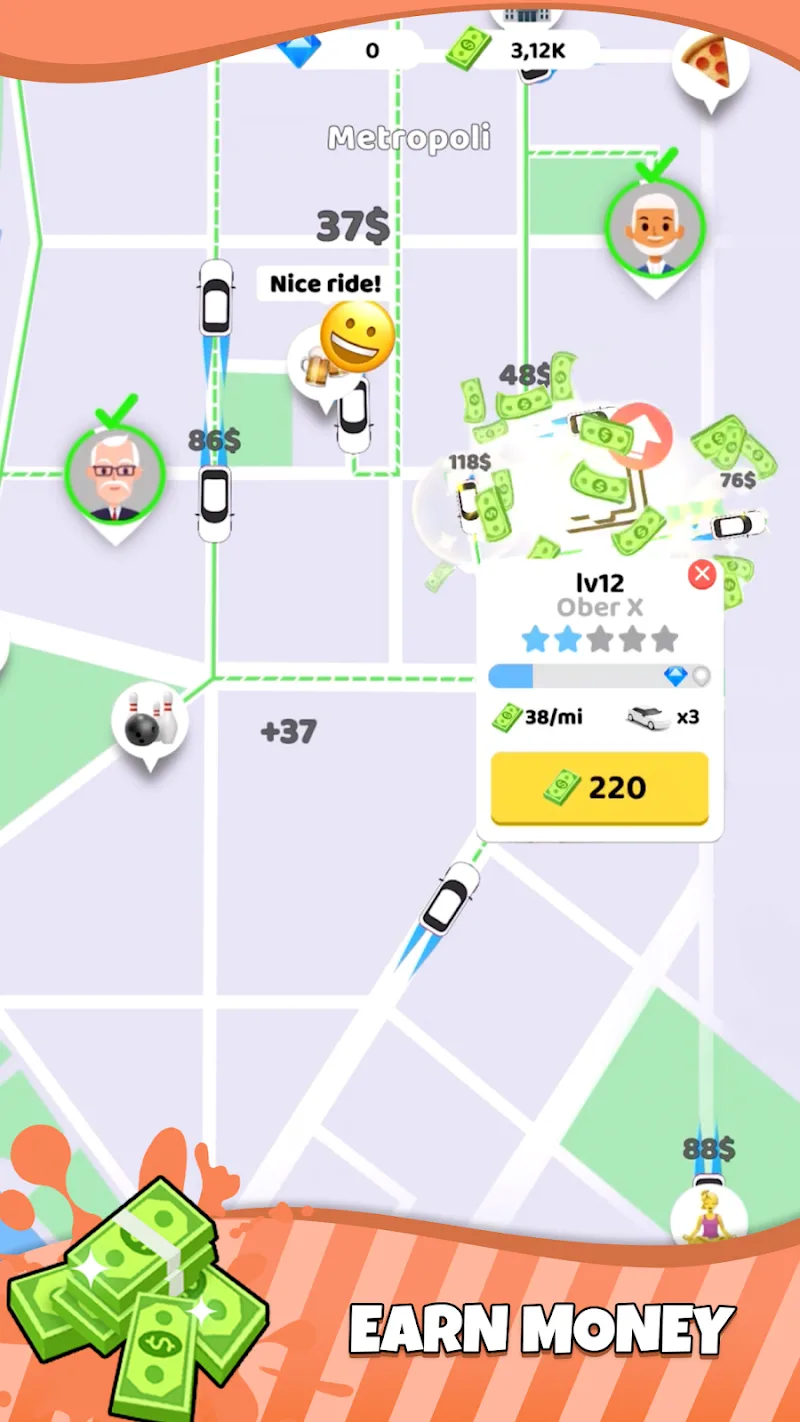 - Start With Taps: You can start your games with taps. You just need to tap and tap to quickly control your cars to pick up and drop off passengers quickly and most effectively.