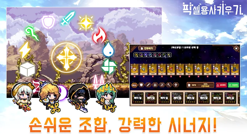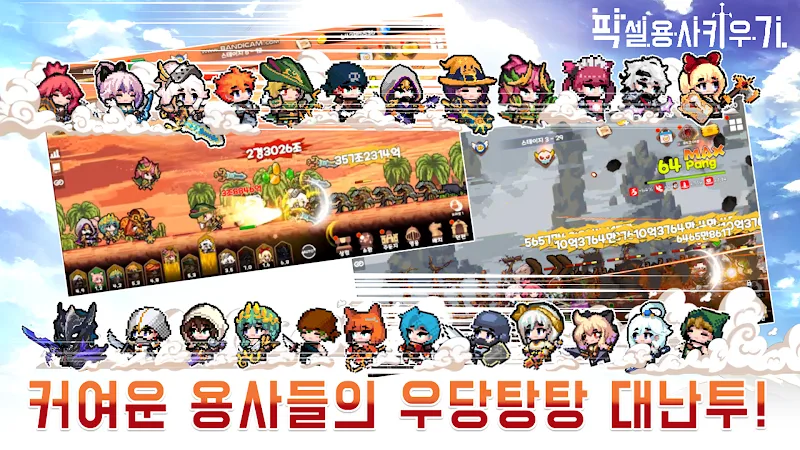Pixel Heroes Idle uses a classic pixel art style reminiscent of legendary role-playing games on computers and consoles of the past. The game’s characters, monsters, and backgrounds are all designed with simple but sophisticated pixel images, creating a unique and impressive fantasy world.