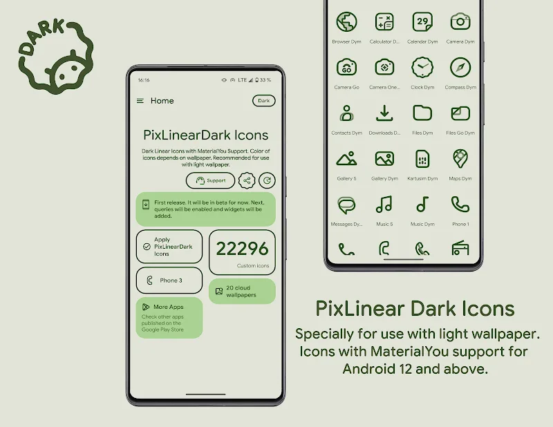 An icon pack is, of course, to make your smartphone more special. If you like minimalist style, you can find PixLinear Dark Icon Pack. Basically, it is the same as other minimalist icon packs. But this pack also brings a dark vibe, where people want to make their eyes more comfortable. To be honest, nowadays, people use their phones too much and even use them at night. This time is extremely harmful to the eyes if the smartphone interface is too bright. That is why icon packs like this are developed to such an extreme level.