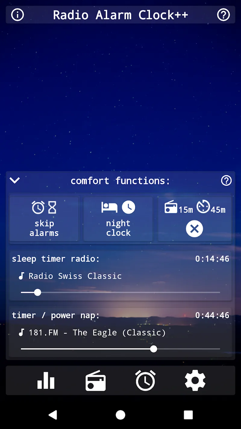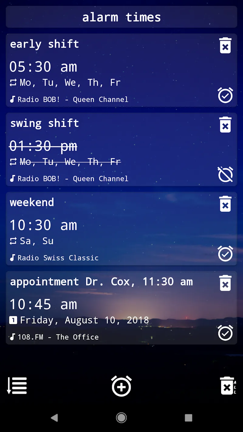 Radio Alarm Clock + will bring you an extremely unique and attractive alarm. You will never be late or miss any of your appointments when applying. The application will bring you extremely useful and optimal alarm features and tools. Every morning, you will come to attractive radio programs instead of annoying alarm bells. What are you waiting for? Come to this attractive alarm application right away.
