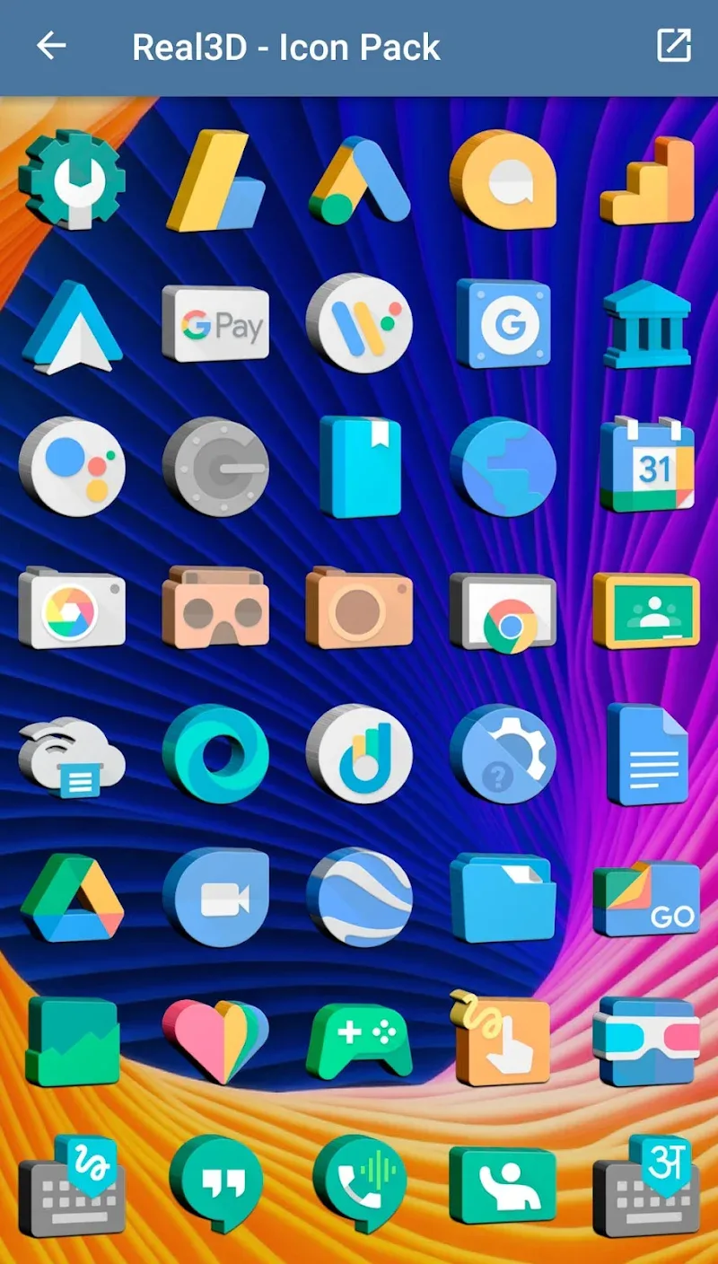 The icon pack with gentle pastel colors will be released by Real3D – Icon Pack. Users can own a special icon pack that helps them create a new, extremely sophisticated interface. 3D icon templates bring depth to the device interface. The application allows users to request icon updates at any time.
