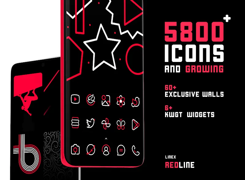 RedLine Icon Pack: LineX lives up to its name. It is a separate app from its parent app. First of all, the highlight of this app is the minimalist icons designed with straight lines. It gives your smartphone a simple yet creative style. And this app focuses on customers who love the color red. Almost all the icons are displayed in eye-catching red. The background of the icons is displayed in mysterious black. This is also a pair of contrasting colors, highlighting each other many times.