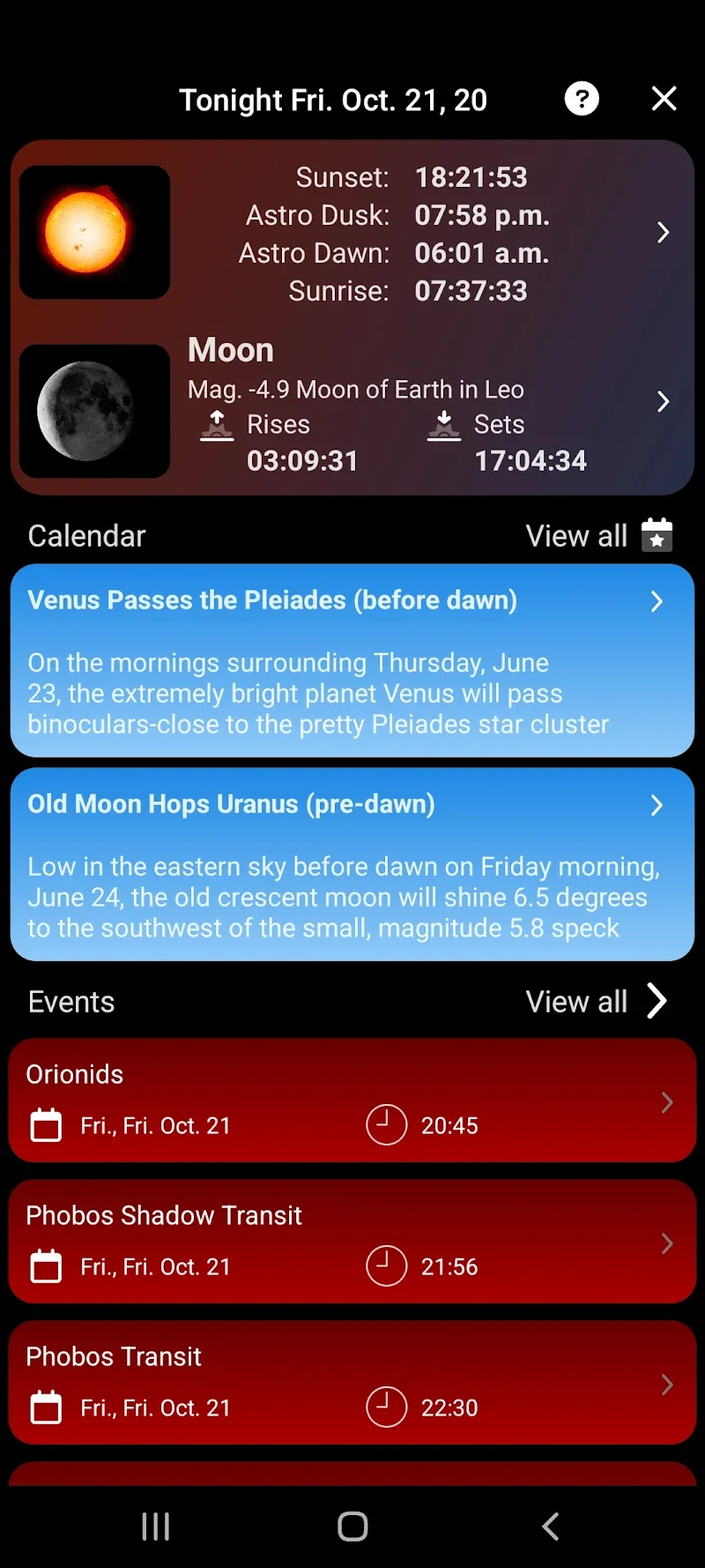 - Event Tracking: This application allows users to track the details of events in the sky. When new information becomes available, you will be notified as soon as possible so that you can monitor this change promptly.