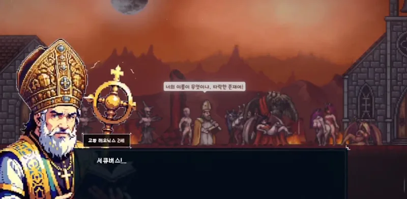 - Retro Fantasy Vibes: The game creates a series of classic-style images to simulate the battle. The story of the continent and the power of the Pope will be told coherently. Players will be immersed and fight in a particularly attractive space.