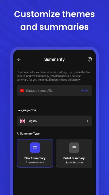 Summarize: AI Video Summarizer is an extremely unique and convenient application. The application will bring you extremely useful features and tools to help you summarize your videos quickly. You will not need to sit for hours to watch and filter the information in your videos and shorten it; this process is extremely time-consuming, but when using this application, the system only takes a few seconds, and you can own the most detailed and accurate summary videos for you.