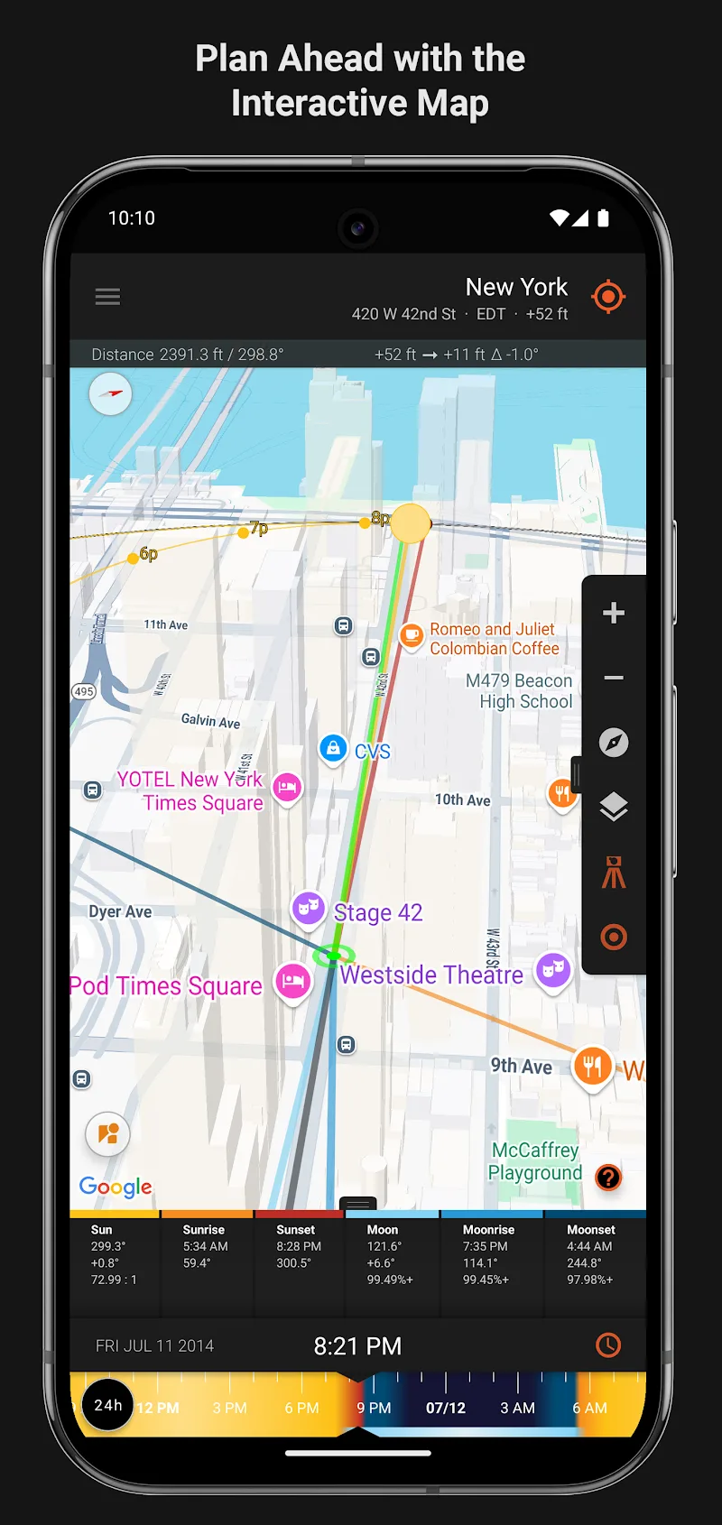 The sun and the moon are the two most important celestial bodies in human life since their appearance until the present. In truth, both of these firmament bodies have had a tremendous impact on craftsmanship since antiquity. During the day, the sun is an unending source of light that makes a difference and makes more wonderful photographs or movies. At night, the moon is the image of numerous works of craftsmanship. Hence, Sun Surveyor (Sun & Moon) was born to serve creative purposes. That’s, on the off chance that you need to select the time when the sun and the moon are within the most favorable position, this application will show you. And since these two ethereal bodies alter each day, this application has extraordinary importance.