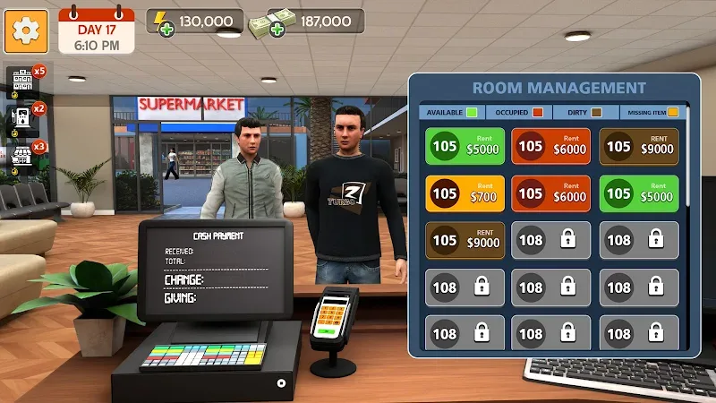Have you ever searched for a game developed in a simulation style where you can become a manager in a real business? Then Supermarket & Motel Simulator will be one of the great options you should not miss for your game collection with its features. The game will allow its players to manage, control and operate their own supermarket and motel businesses, which is extremely attractive.