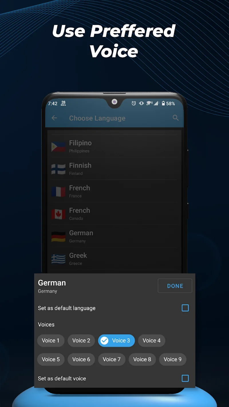 - Customize Voice Settings: Users can choose their preferred voice and create better-quality audio files. The app lets users adjust different parts of the audio, like volume, speed, and pitch. The voice can be tailored to match the user’s desired tone for a better sound.