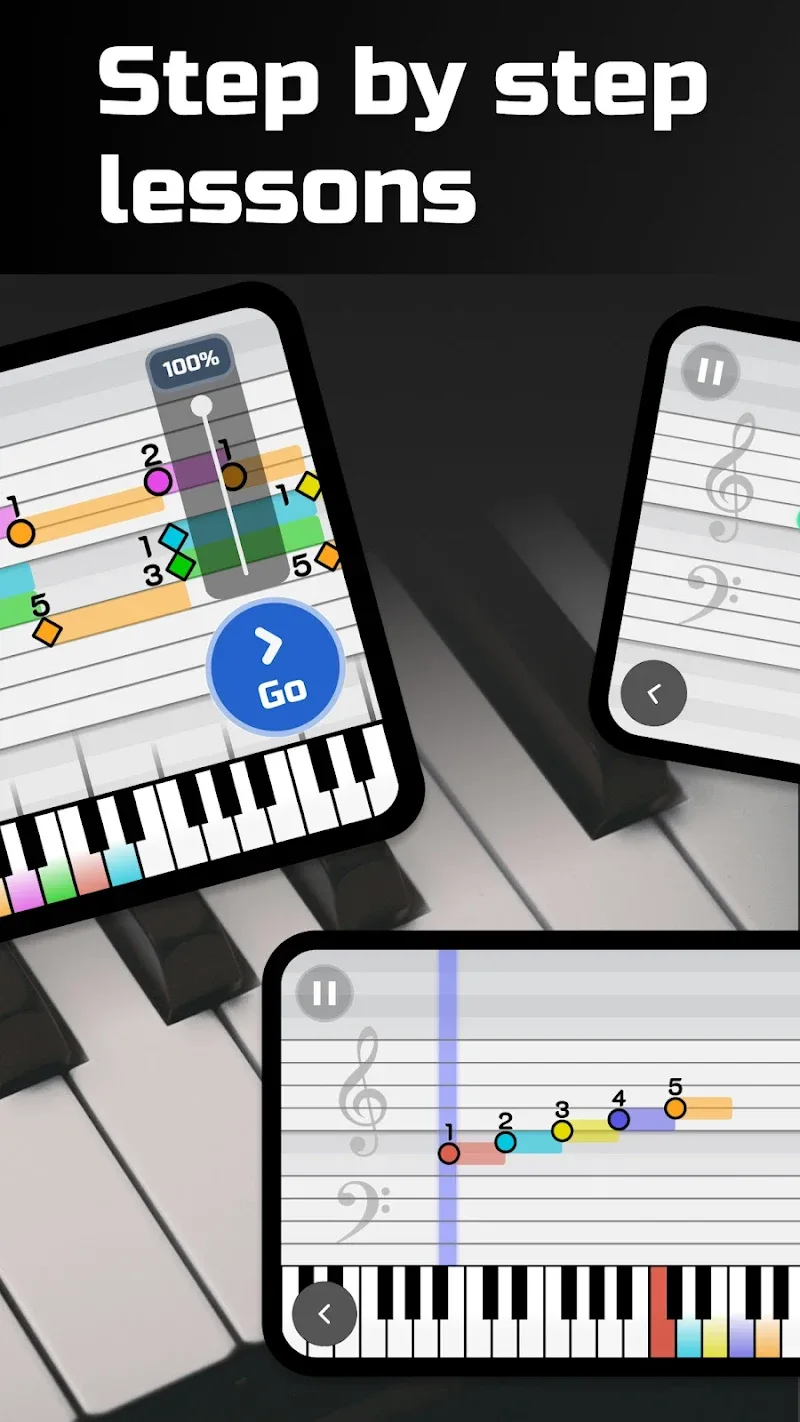 - Motivation boost: Users who love playing the piano can try their hand without buying an expensive piano. This application contains all the knowledge and exercises needed for the piano learning process. The joy of learning the piano can motivate users.
