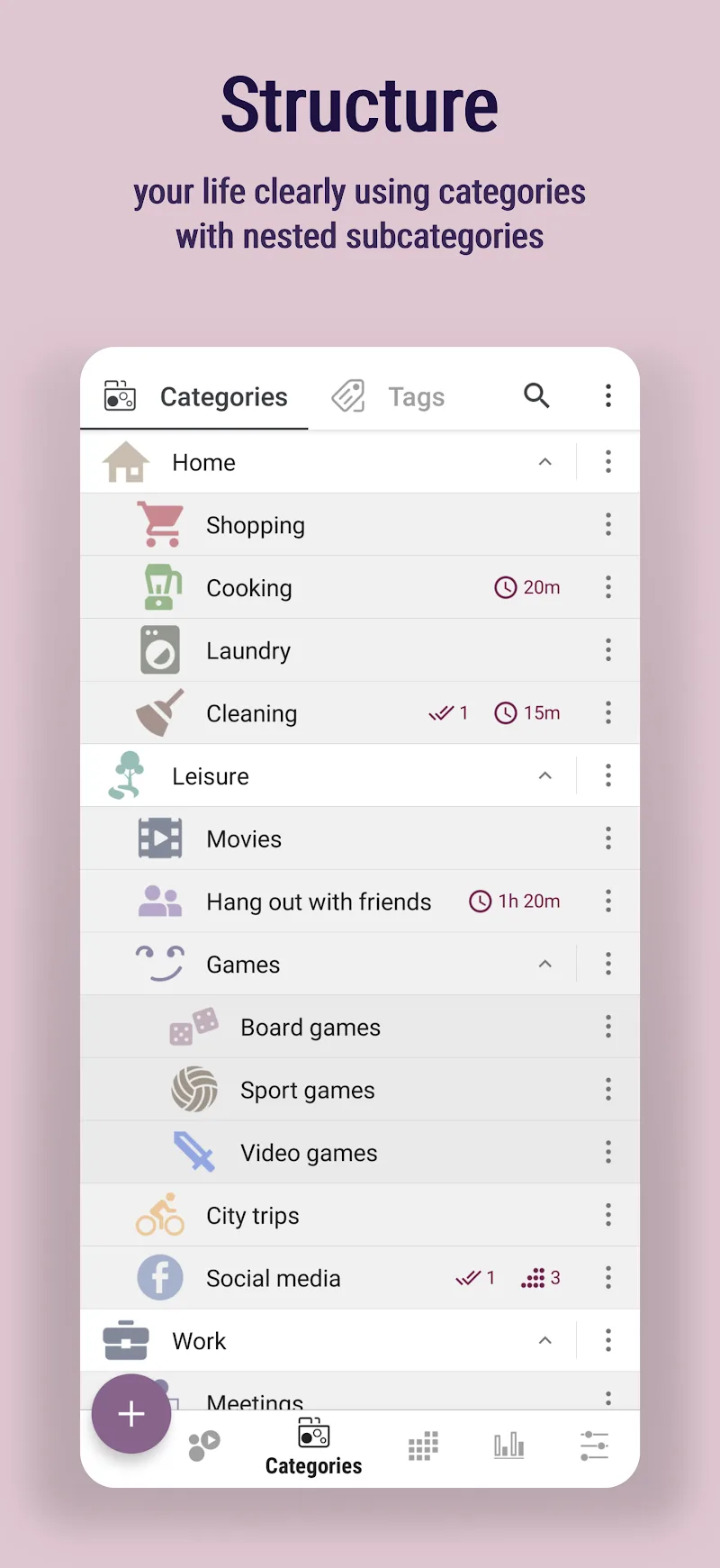 - Hierarchical Structure: Over time, tasks are classified into different categories for easy searching. This classification can be further divided by time if you need it.