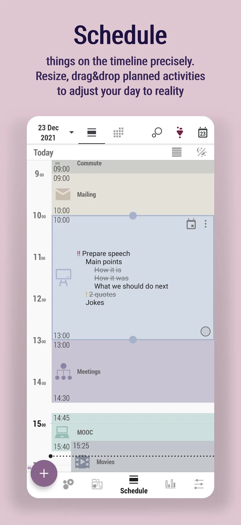 - Convenient Schedule: With a large number of tasks, you should try to observe it as a timeline or a part of the day. This will help you avoid the pressure of doing them all.