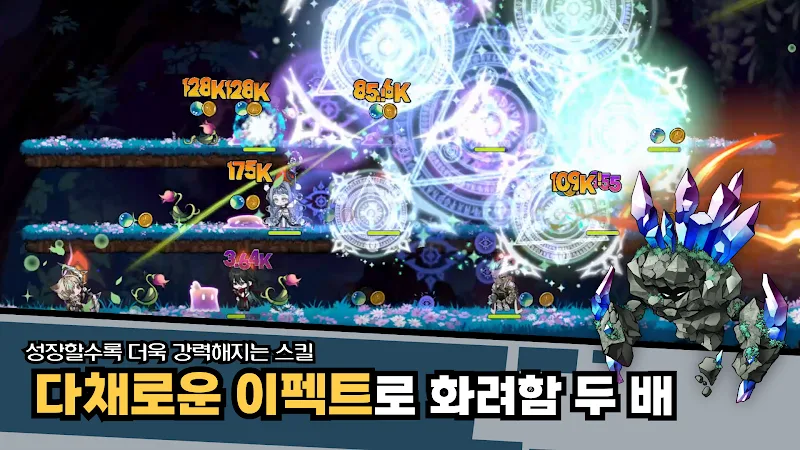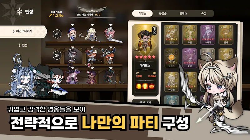 Players of 트리니티 가디언즈: 혼돈의 탑 use magic to fight against the forces of darkness. Colorful battles will be created. Players face battles containing many types of monsters. They will have to choose the right warrior to start the fight. The top task of the game is to protect the world.