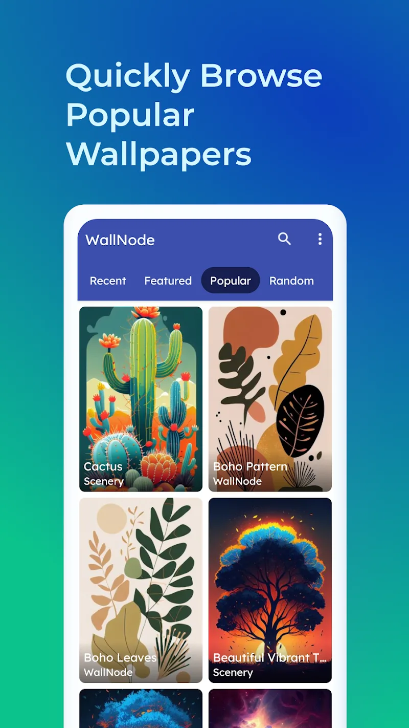 - Diverse Categories: Many categories are provided for you to explore and choose from. You will see wallpapers from abstract, majestic nature and other themes.
