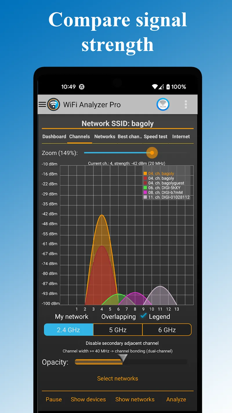 WiFi networks will be analyzed and monitored more effectively by users who own the WiFi Analyzer Pro application. The tools in this application help users complete the optimization of their WiFi networks. In addition, the device is also monitored to upgrade the security system.