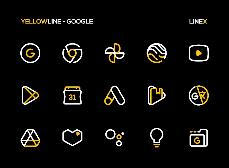 YellowLine Icon Pack: LineX is a derivative application. First, if you want to express your original creativity, you can use the LineX application. It will bring a truly diverse and large set of icon packs. This application focuses on people who have a great love for the color yellow. It will bring users a collection that retains the spirit of LineX. But all the icons shown in this app have a characteristic yellow color. Maybe this is a color that represents feng shui, bringing luck to the user. Or simply, it is just a color to express the user’s deep personality.